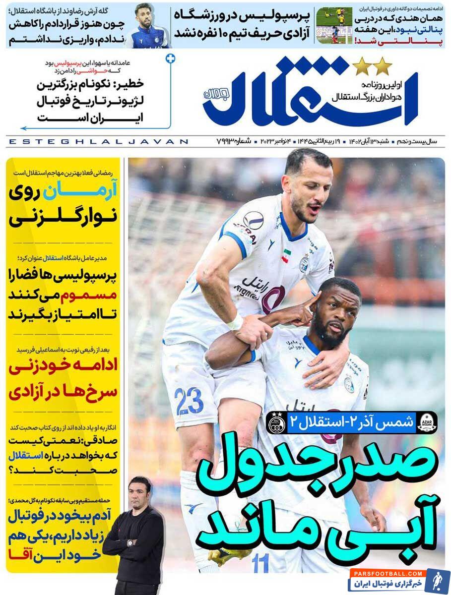 نوشته رزنامه استقلال جوان| صدر جدول آبی ماند اولین بار در پارس فوتبال | خبرگزاری فوتبال ایران | ParsFootball. پدیدار شد.
